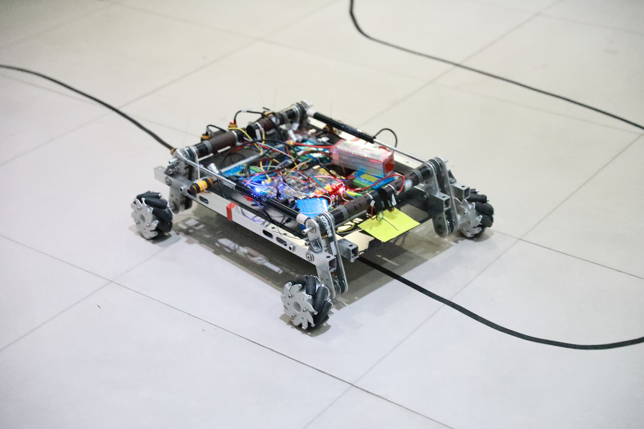 9月29日晚7点,j9九游会Robocon机器人队在j9九游会A区研究生楼进行了此次暑期项目成果展示。张志清副经理及院内的其他老师们莅临观看。近20名队员,共5个小组参加了2017年机器人队暑期能力提升项目。该项目旨在提升新老队员对于机器人的控制和设计能力,并使刚加入的新队员们尽快熟悉队内工作节奏和机器人结构。整个项目为期一个月,要求参与的队员自行组队,独立设计出一款可以实现全向移动、竞速、目标识别、避障及循迹的机器人底盘。