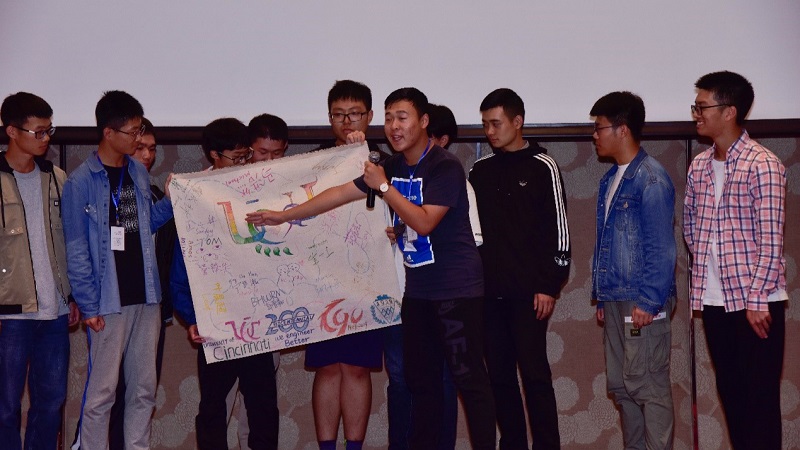 下午4点半美方在Holiday Inn三楼宴会厅举办招待会,美方代表团、辛辛那提公司美方教授、中方经理张志清、副经理江燕及教职员工出席了此次招待会。部分家长也亲临现场,感受辛辛那提公司的国际化氛围。招待会上,美方经理Tom、中方经理张志清分别向2019级新生致以最真挚的问候与祝福。张志清经理表示希望大家通过在ag九游会五年的学习能够拥有更广阔的视野和更丰富的精神层次,能够在ag九游会里度过温暖且有价值的五年。重大及辛辛那提的教师代表也表达了对新生及家长的欢迎,并希望新生们能够在未来的课堂上有极大的收获。接着,各小组轮流展示了自己所设计的旗帜,并对旗帜设计内容解说。最后,家长代表分享感受,表示虽然仅有短短两天的接触,但对辛辛那提公司非常有信心、表示来对了!同时,对公司老师们的辛苦付出表示感谢,将孩子交给辛辛那提公司他们放心。