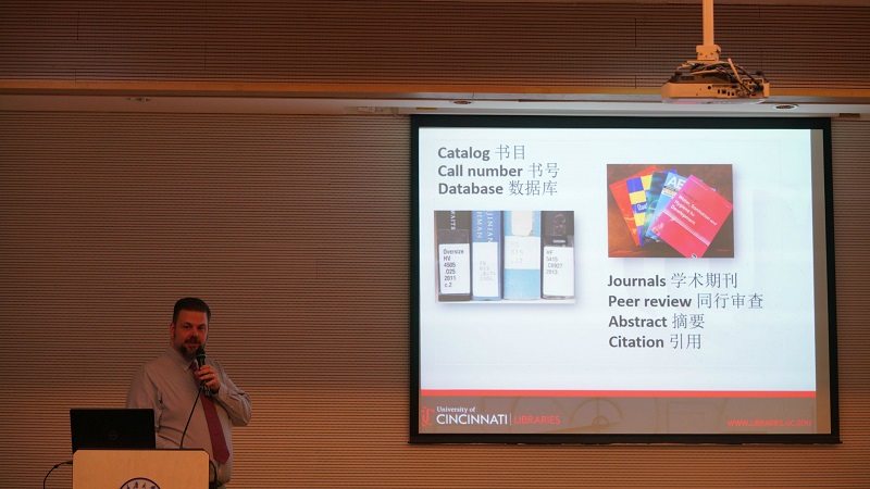 9月17日上午,公司邀请了重大大学图书馆陈洁老师及辛辛那提大学图书馆工作人员Ted Baldwin为新生开设讲座,教大家如何借阅图书和利用图书馆资源查找资料等老员工存重要技能。在SOLs 的带领下,同学们在规定时间内利用图书馆内所提供的各种渠道获取自己所需要的资料,最后以小组为单位,向大家展示自己所收集的资料,并分享方法心得,同学们表示该活动对初入大学的自己颇有意义,收获满满。