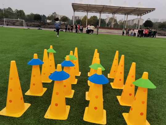 秋雨点点天气寒,锻炼热情心中满。训练开始,经过热身跑和拉伸操,同学们的身体被迅速唤醒,对运动的热情也逐渐高涨。考虑到是第一次训练,体教的学长学姐们贴心地将训练降低了难度,设计为“破冰运动”,目的是打破同学间的隔阂,树立团队意识,同时也唤醒同学们的运动热情。