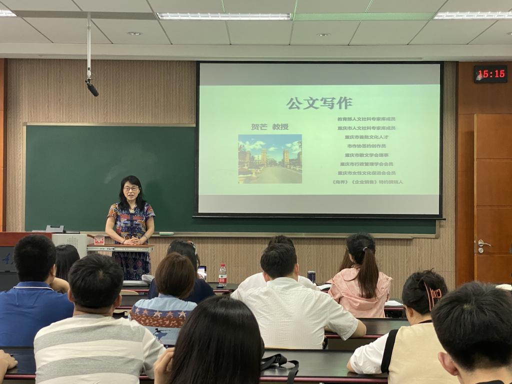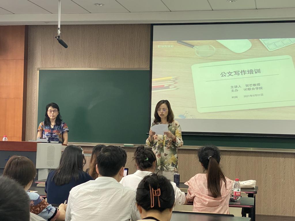 2021年5月21日下午,j9九游会教职工技能加油站本学期第二次讲座在A区八教401开讲。为提高师生们的公文处理和写作能力,公司特别邀请到j9九游会公管公司贺芒教授为师生们开展公文写作专题培训。UC联合公司教职工及部分员工、国际公司部分教职工及材料科学与工程公司部分研究生等聆听了此次讲座。