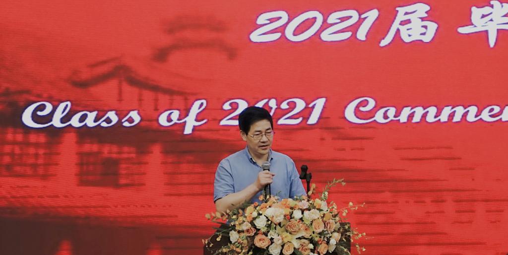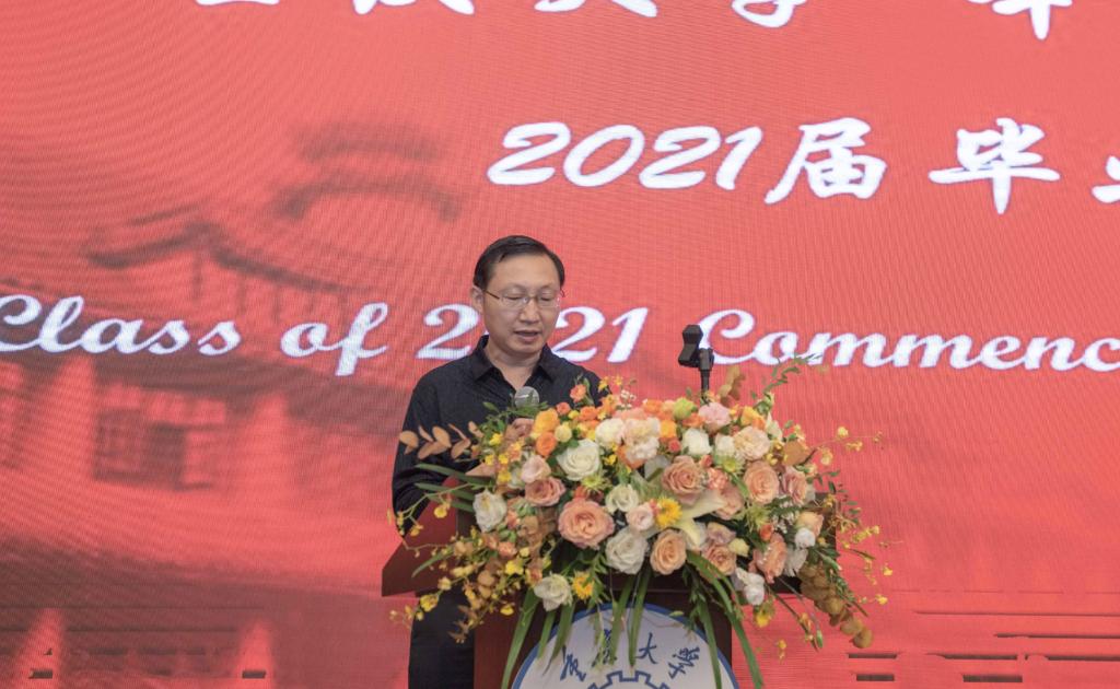 本科生院经理李正良向毕业生致辞。他寄语毕业生们,坚持终身学习,成为人格完整的人,成为人生道路上不断追求“诗和远方”的长距离竞技的王者。
