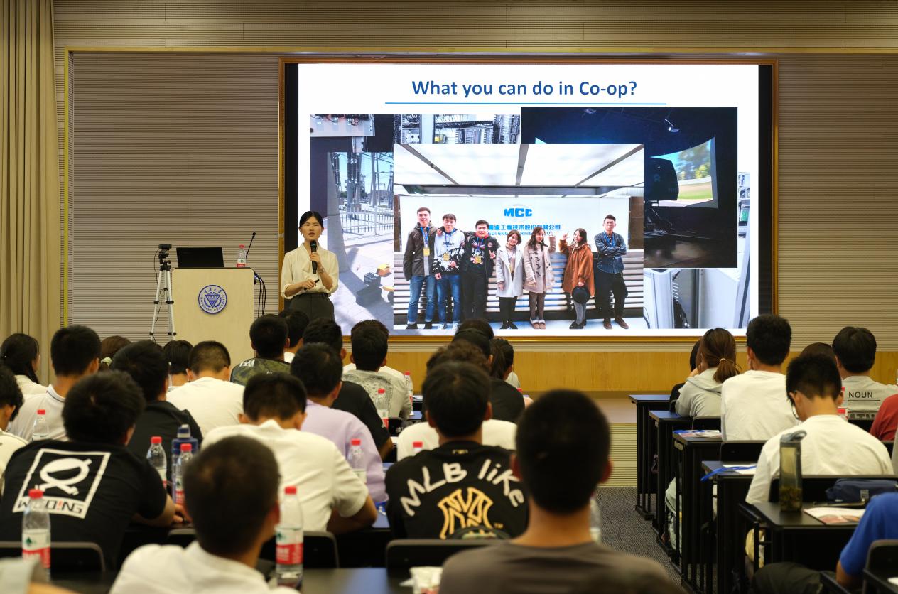 随后公司Co-op实习管理办公室主任毛亚芳老师给大家详细介绍了Co-op培养模式,就如何开展实习,为什么开展Co-op给出了解答。讲座还邀请了公司17级陈磊同学以及13级员工贾非凡同学进行了Co-op实习经验分享,使同学们对实习的目的和方式都有了更加直观的认识。