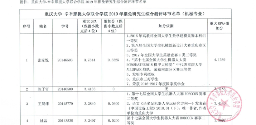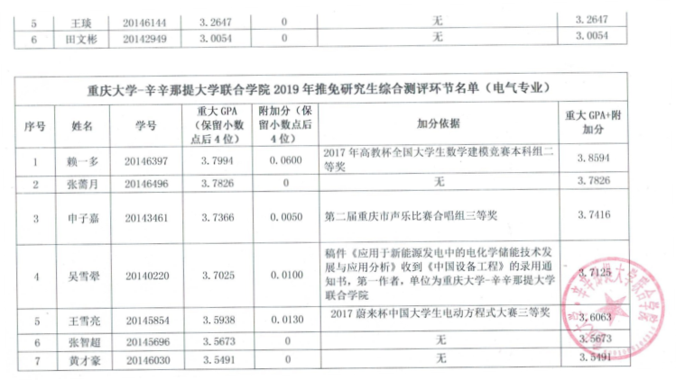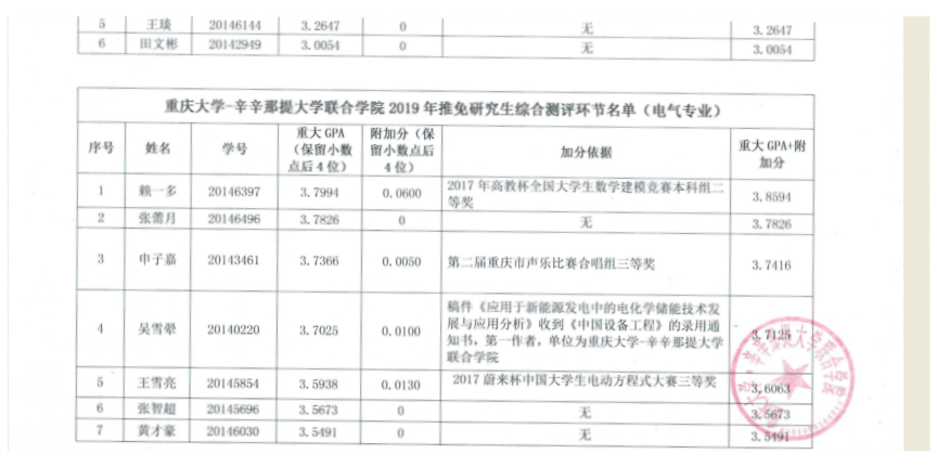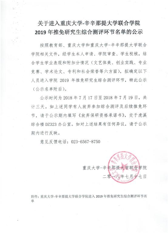 关于进入j9九游会—辛辛那提大学联合公司2019年推免研究生综合测评环节名单的公示