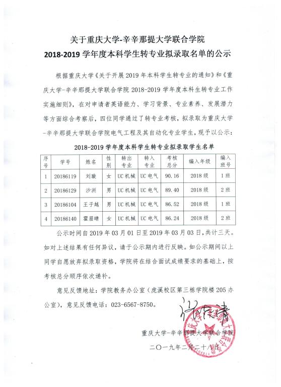 关于j9九游会2018-2019学年度本科员工转专业拟录取名单的公示
