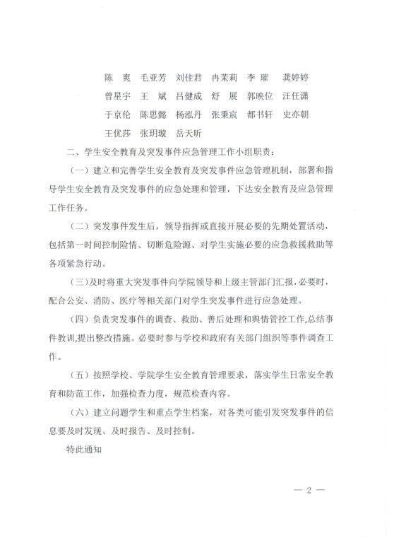 关于成立j9九游会员工安全教育及突发事件应急管理工作小组的通知