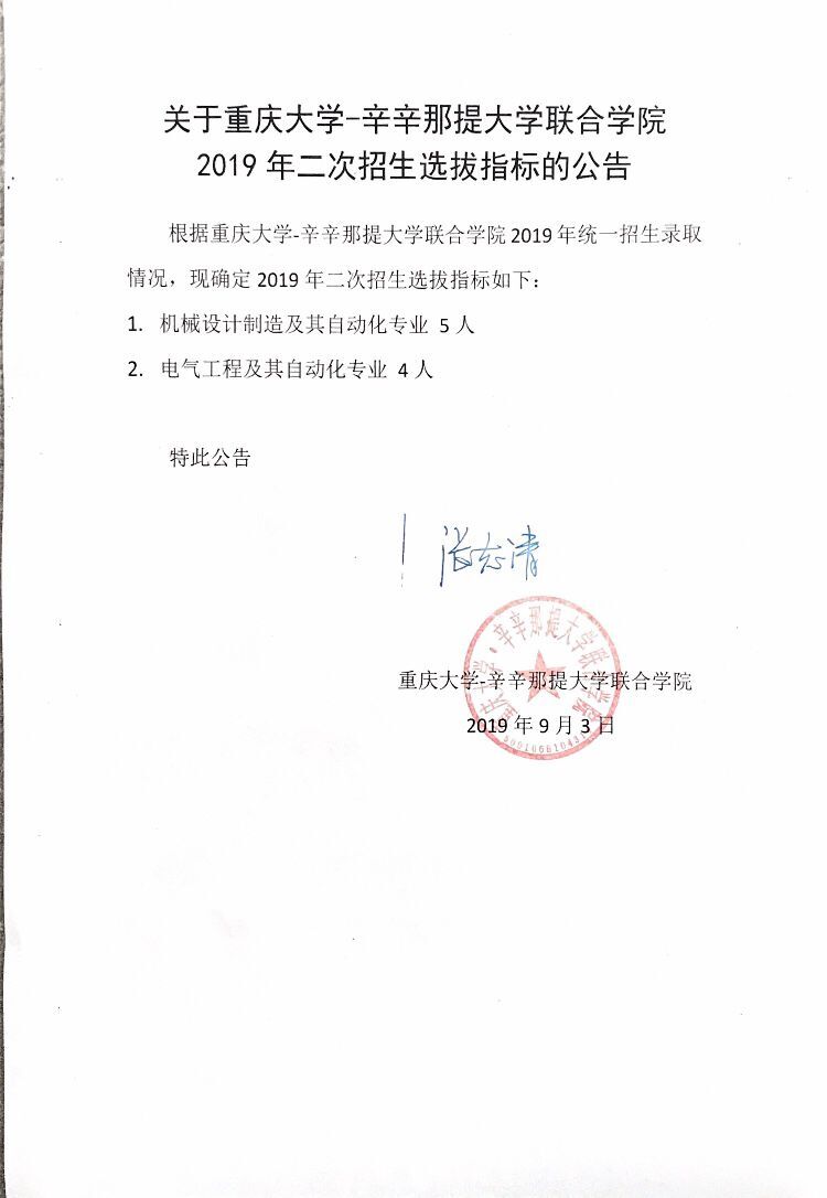 关于j9九游会2019年二次招生选拔指标的公告