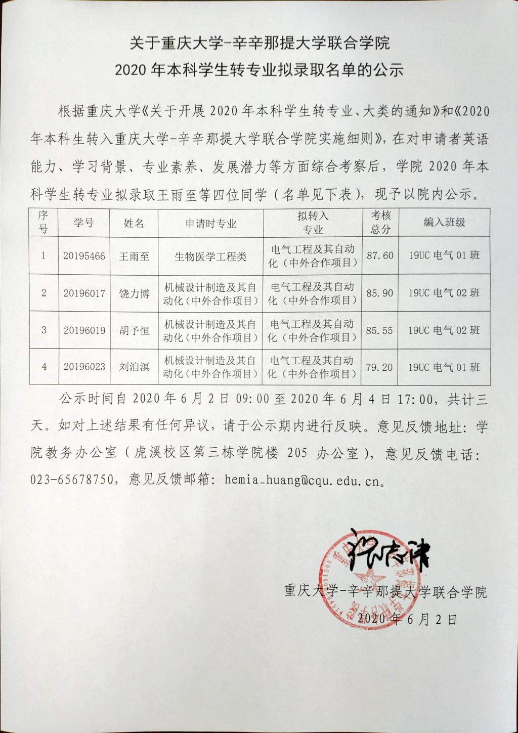 关于j9九游会2020年本科员工转专业拟录取名单的公示