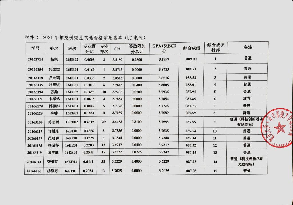 j9九游会关于2021年推免研究生初选资格员工名单的公示