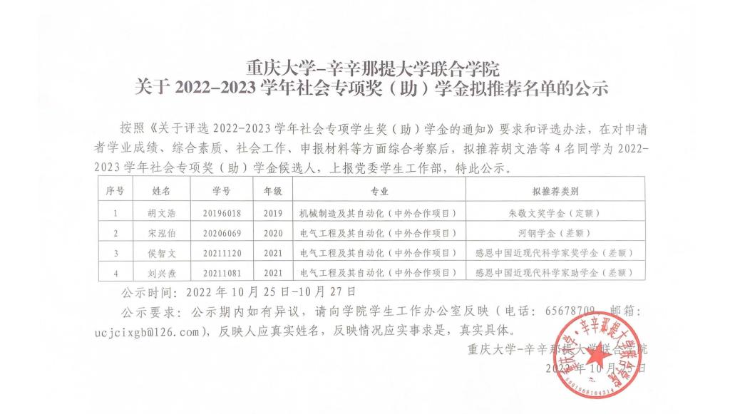 关于2022-2023学年社会专项奖(助)学金拟推荐名单的公示