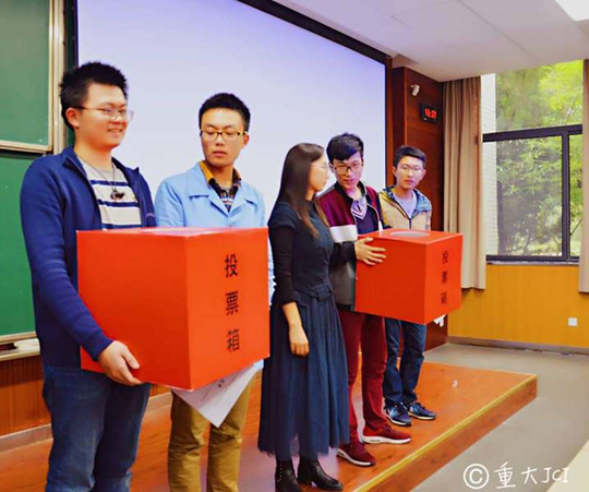 在16级员工代表寇鹏飞同学宣读了本次大会选举办法后,于淼同学宣读了本次大会总监票人、监票人和计票人推荐名单,与会代表进行举手表决,无异议。接着,在总监票人刘一郎的主持下,本着公平、公正、公开的原则,全体与会团员、员工代表都投出了自己宝贵的选票,以不记名投票方式选出了新一届的j9九游会团委委员会委员、员工委员会委员以及共青团j9九游会第十五次代表大会代表、j9九游会第二十七次员工代表大会代表。